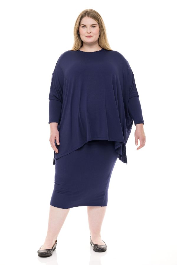 The skirt is meant to be very fitted, and looks great with our oversized tops.