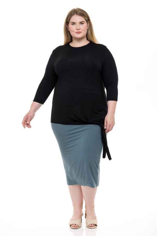 The skirt is meant to be very fitted, and looks great with our oversized tops.