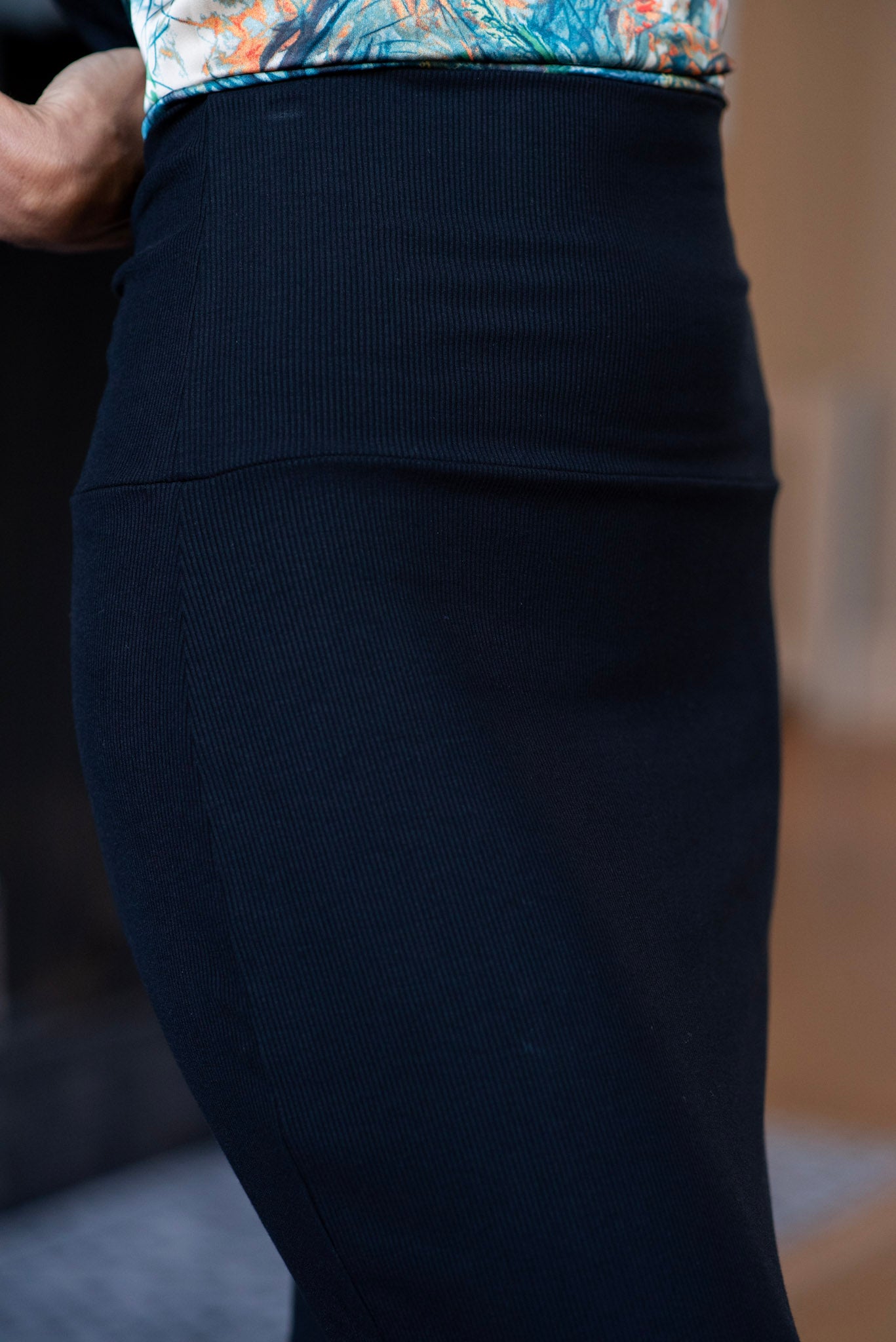 This ribbed skirt is a MUST!! Super stretchy yet clings gorgeously to your body shape, so flattering and comfortable- you can't go wrong! The super high content of lycra makes this stretchy skirt just as gorgeous and snug on a size 0 as it is on a size 16! Midi length Ribbed Stretch fabric