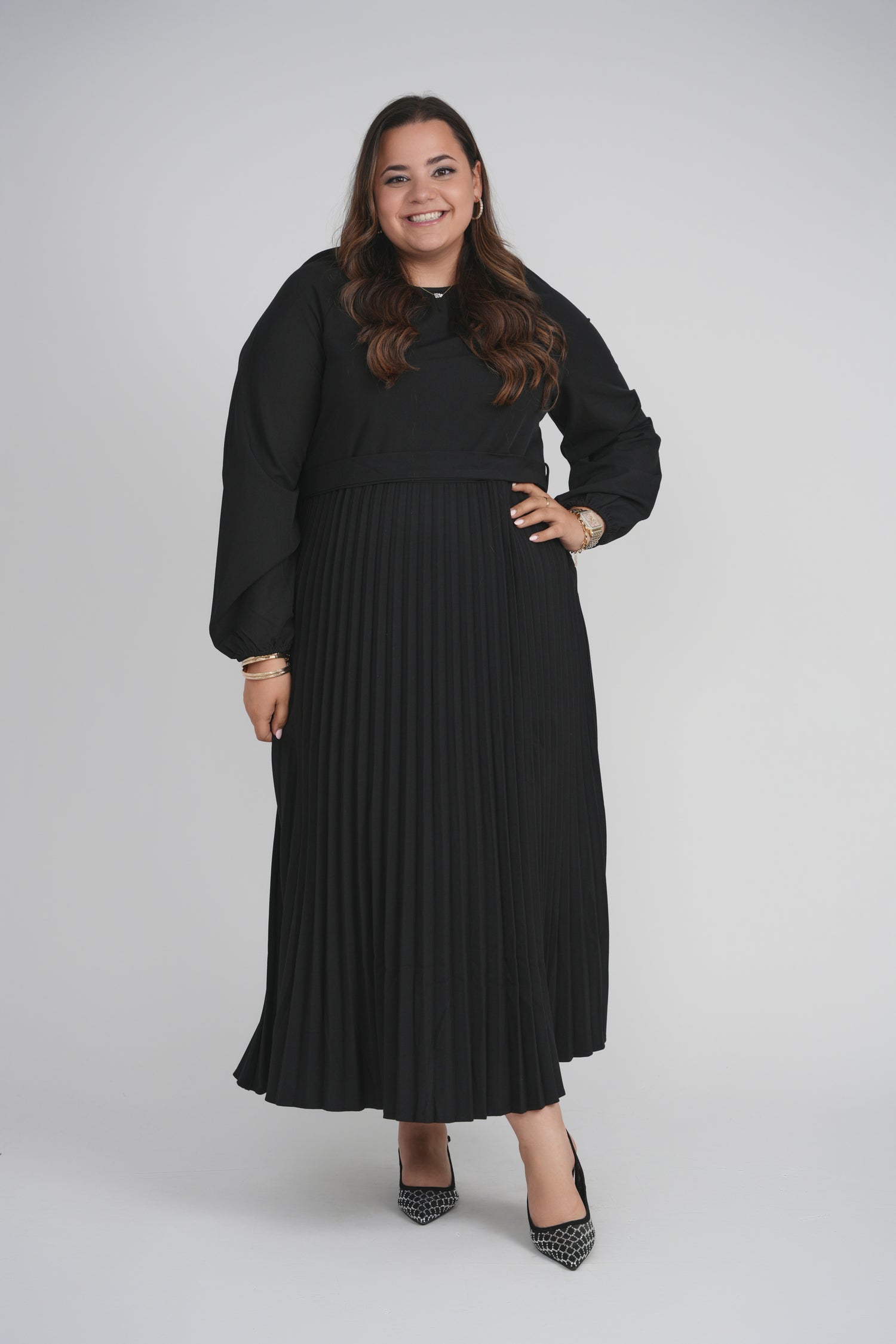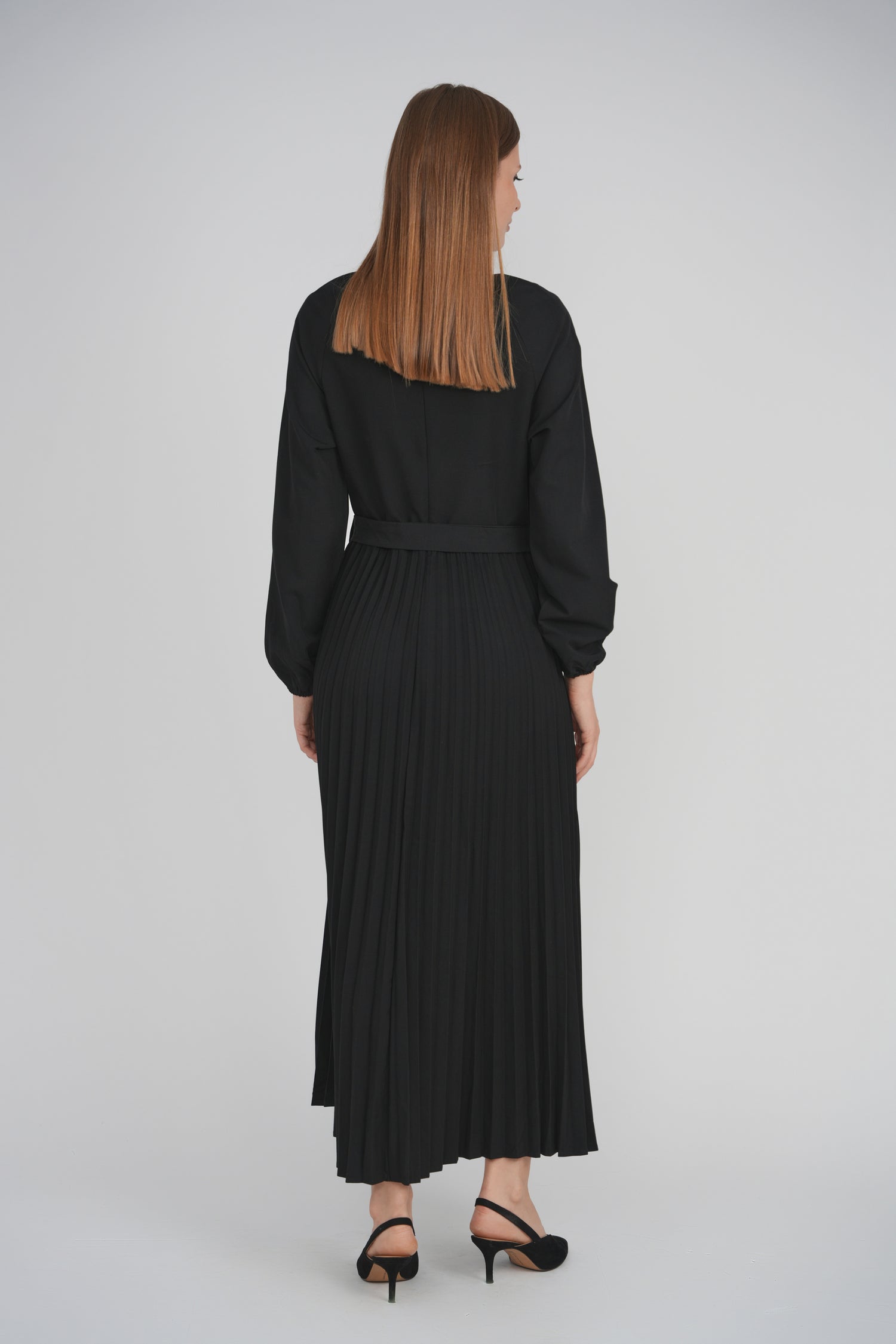 BELTED PLEAT DRESS (BLACK)