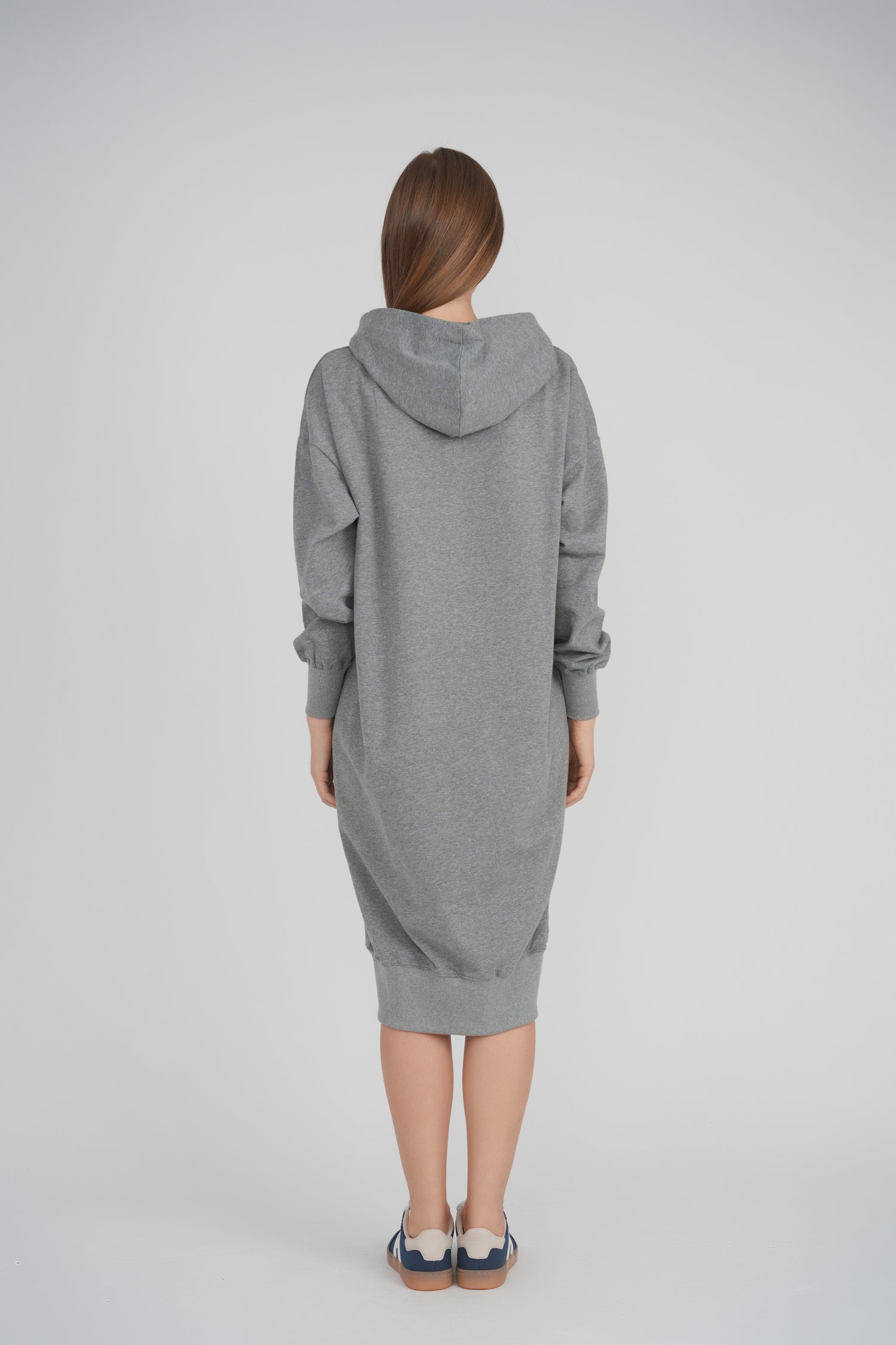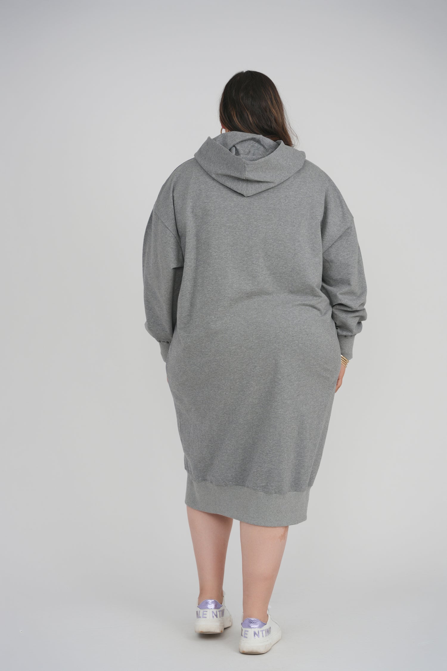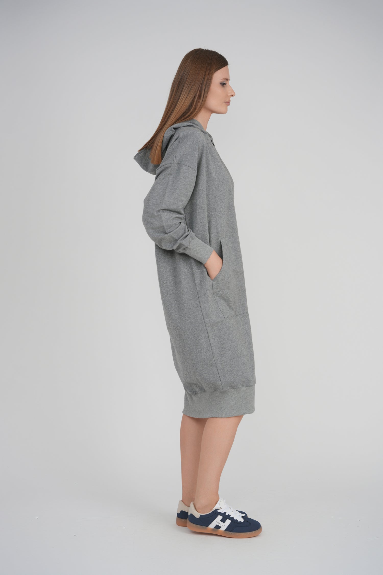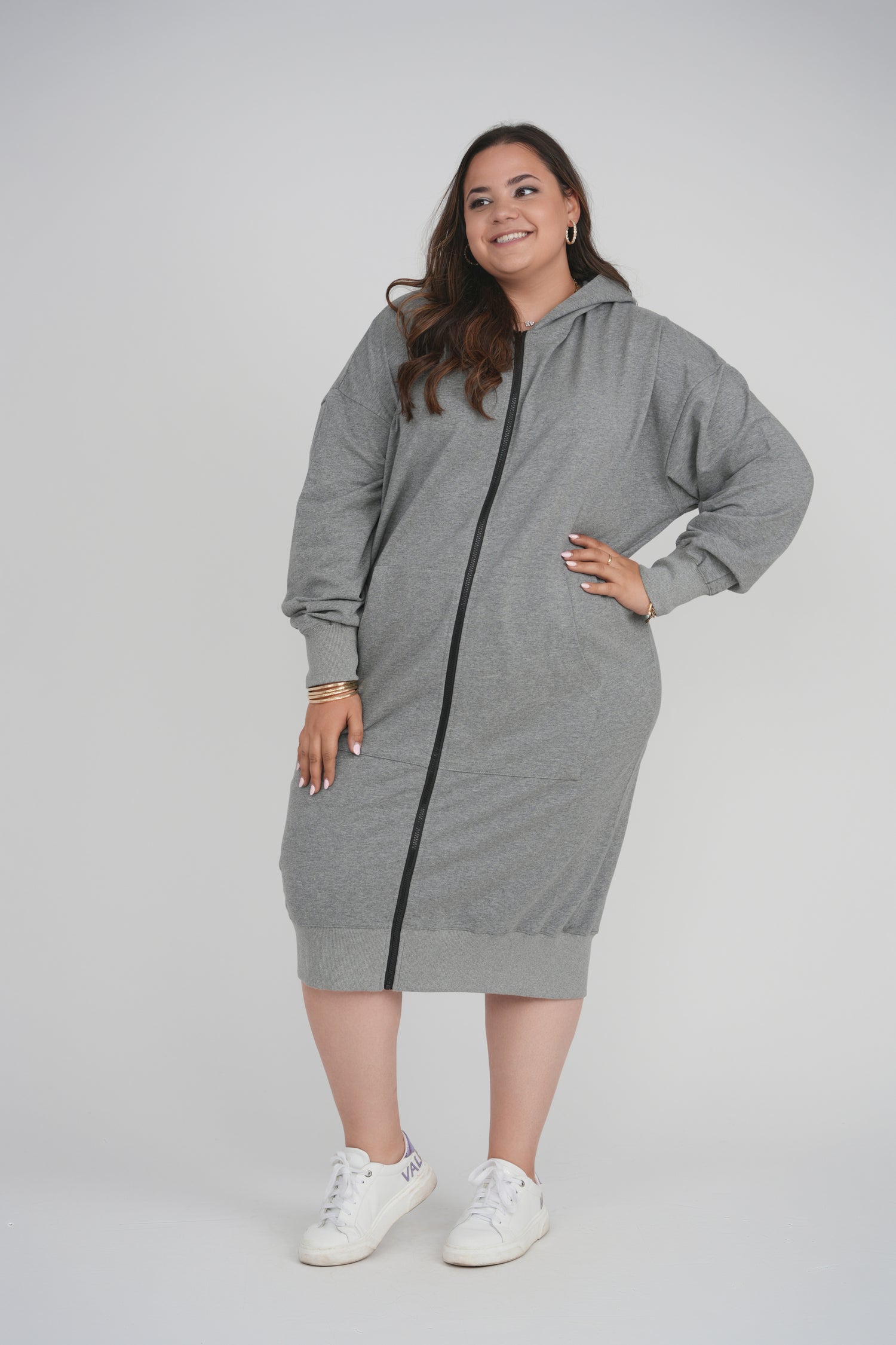 HOODIE ZIP UP DRESS LONG LENGTH 41" (CHARCOAL)