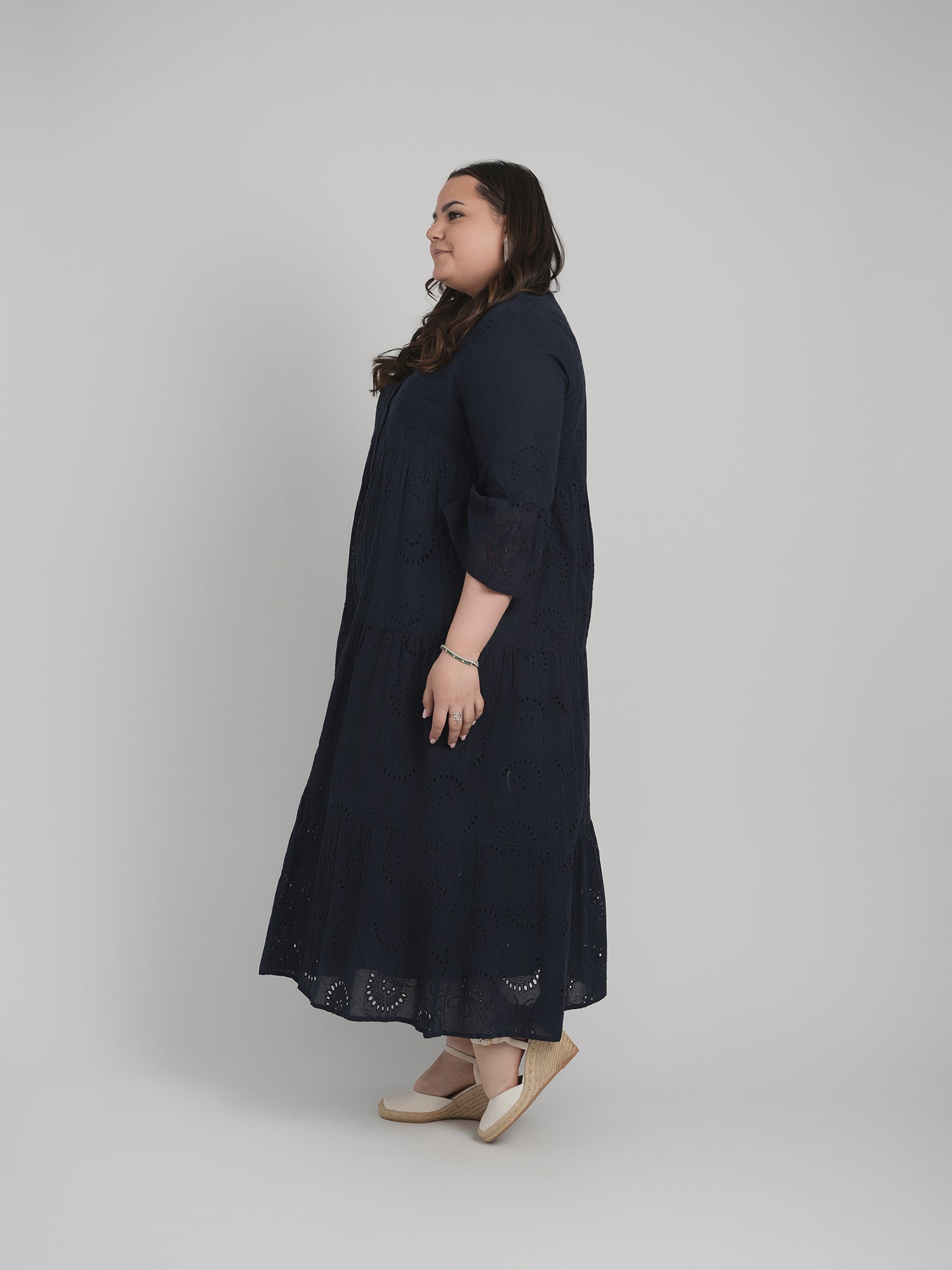 MAXI EYELET DRESS (NAVY)