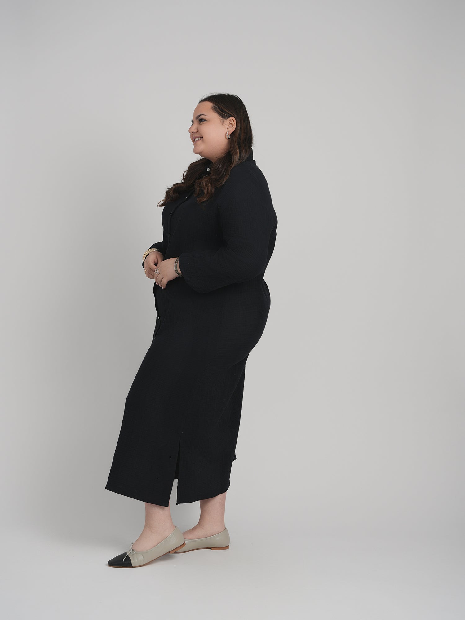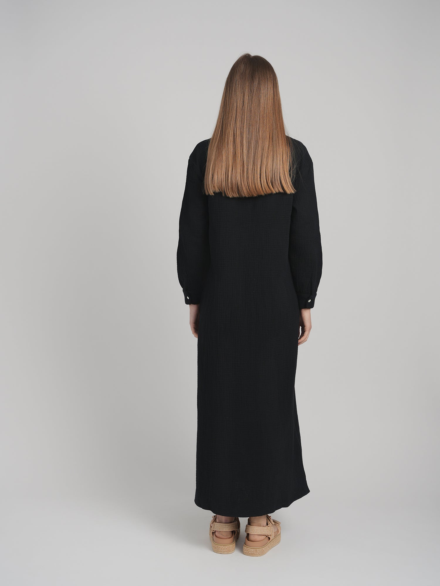 MAXI GAUZE SHIRT DRESS (BLACK)