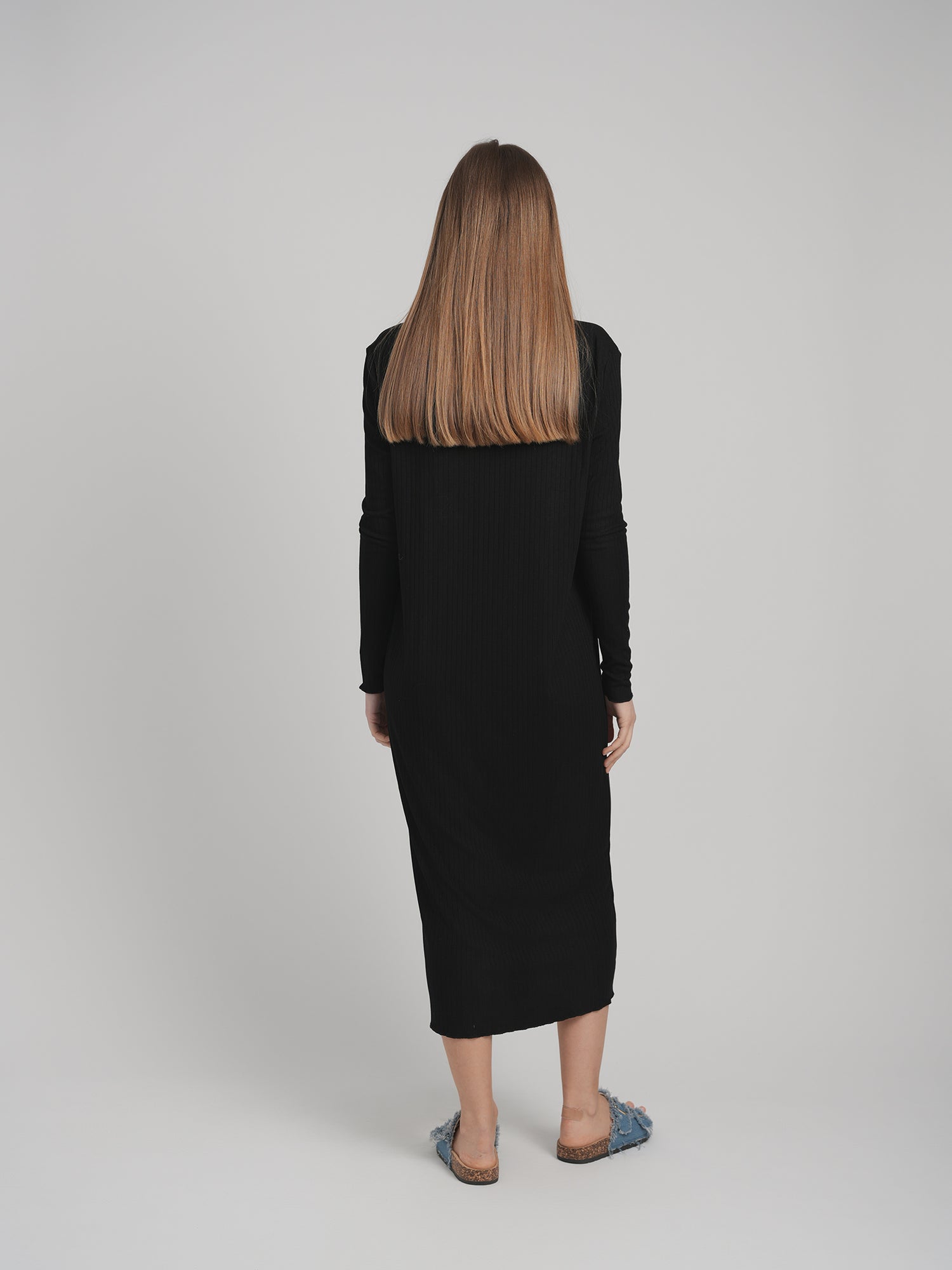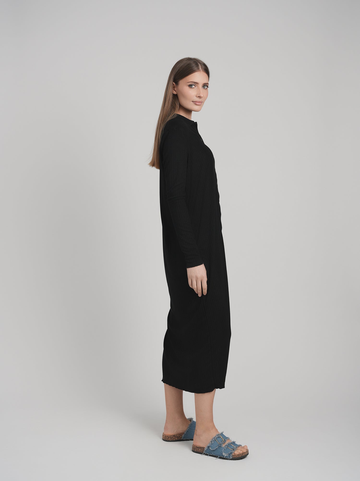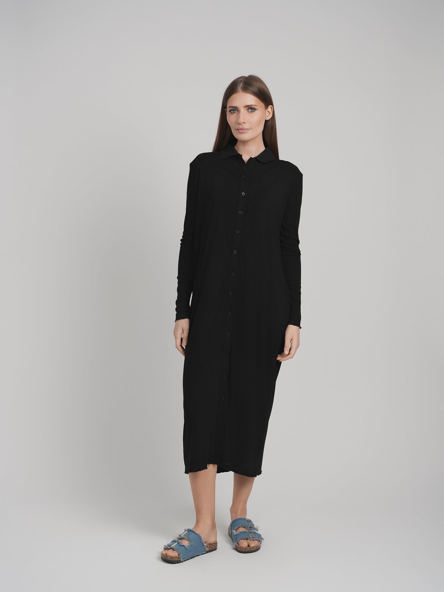 RIBBED BUTTON DOWN DRESS (BLACK)