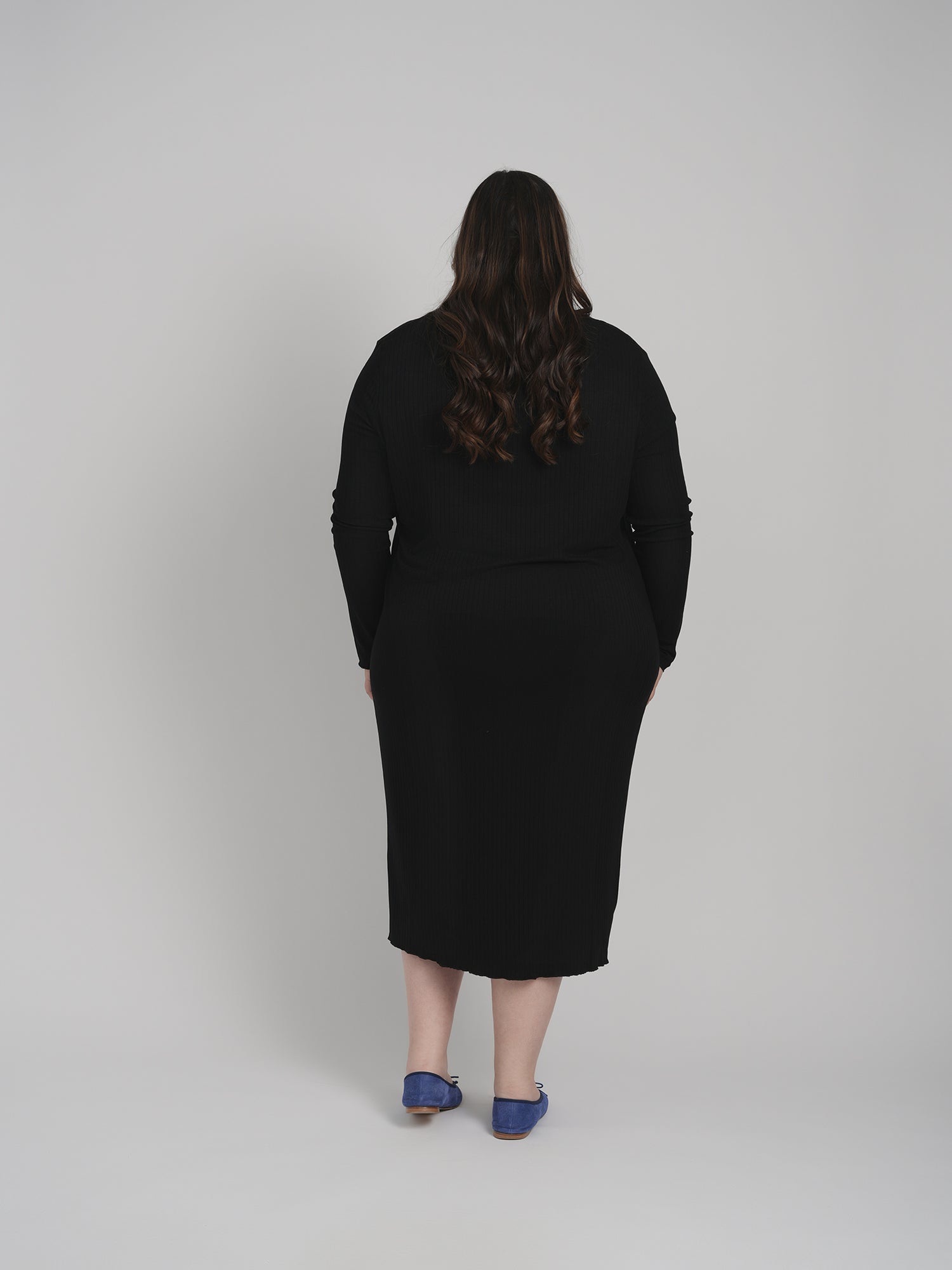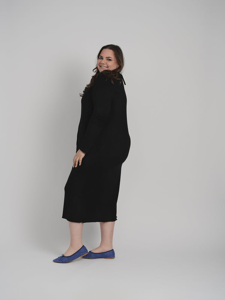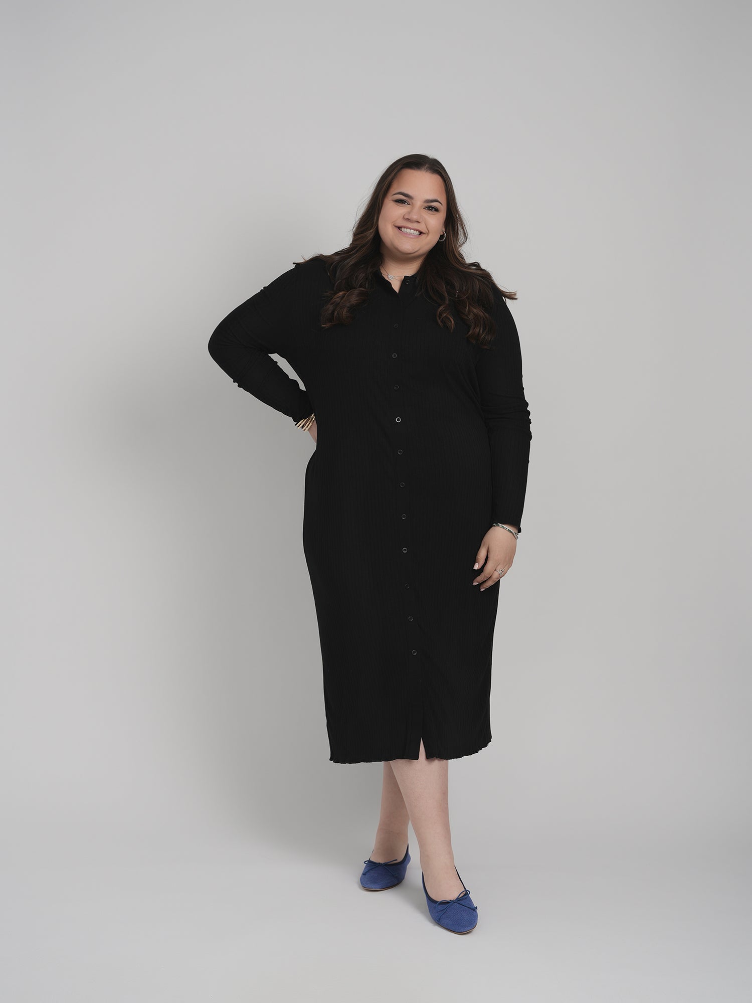RIBBED BUTTON DOWN DRESS (BLACK)