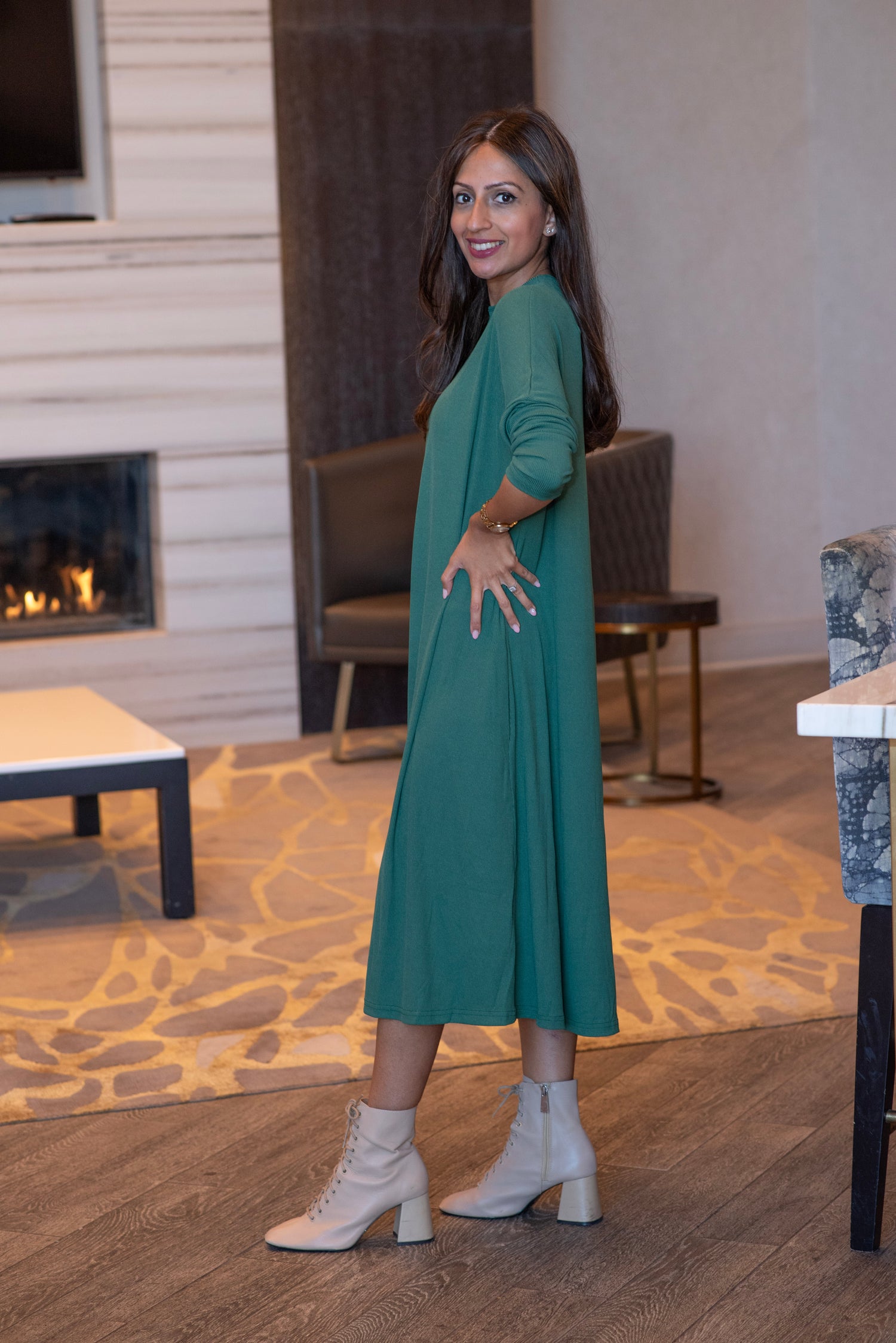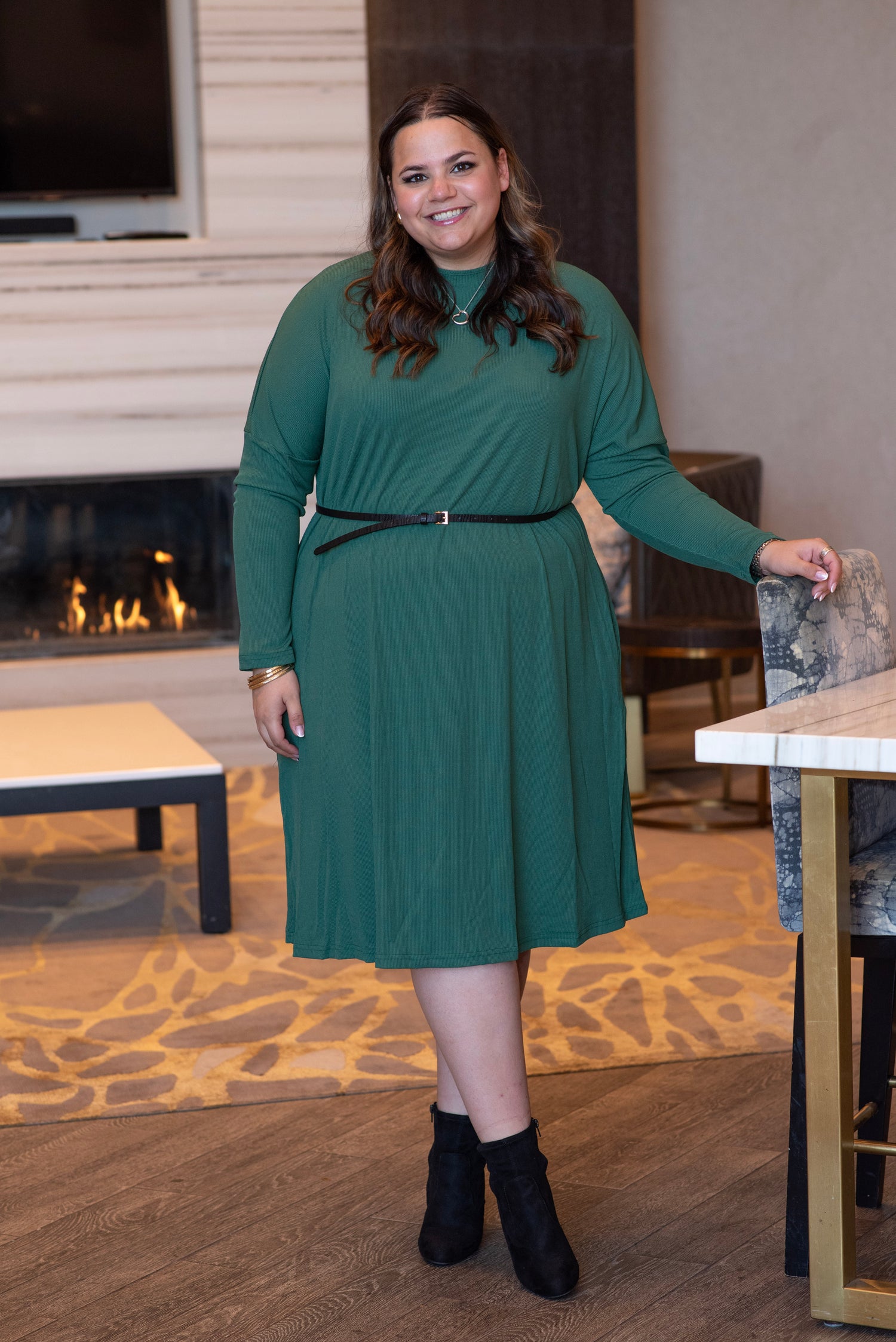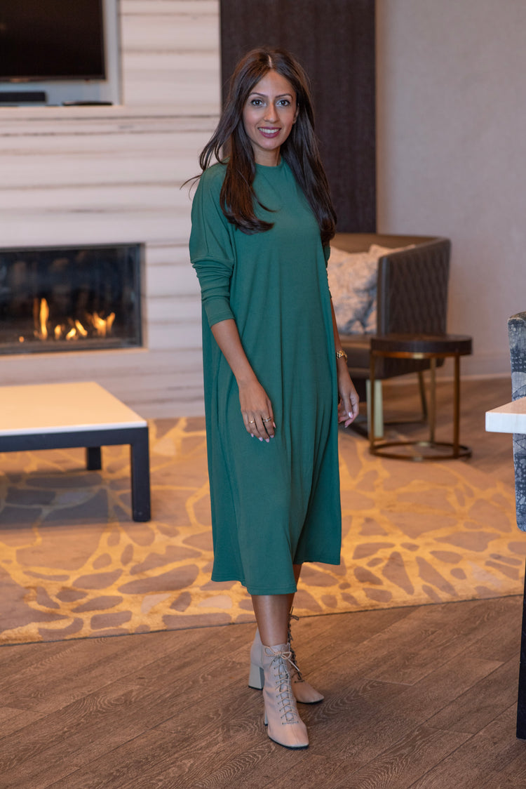 RIBBED CREW NECK DRESS (FERN)