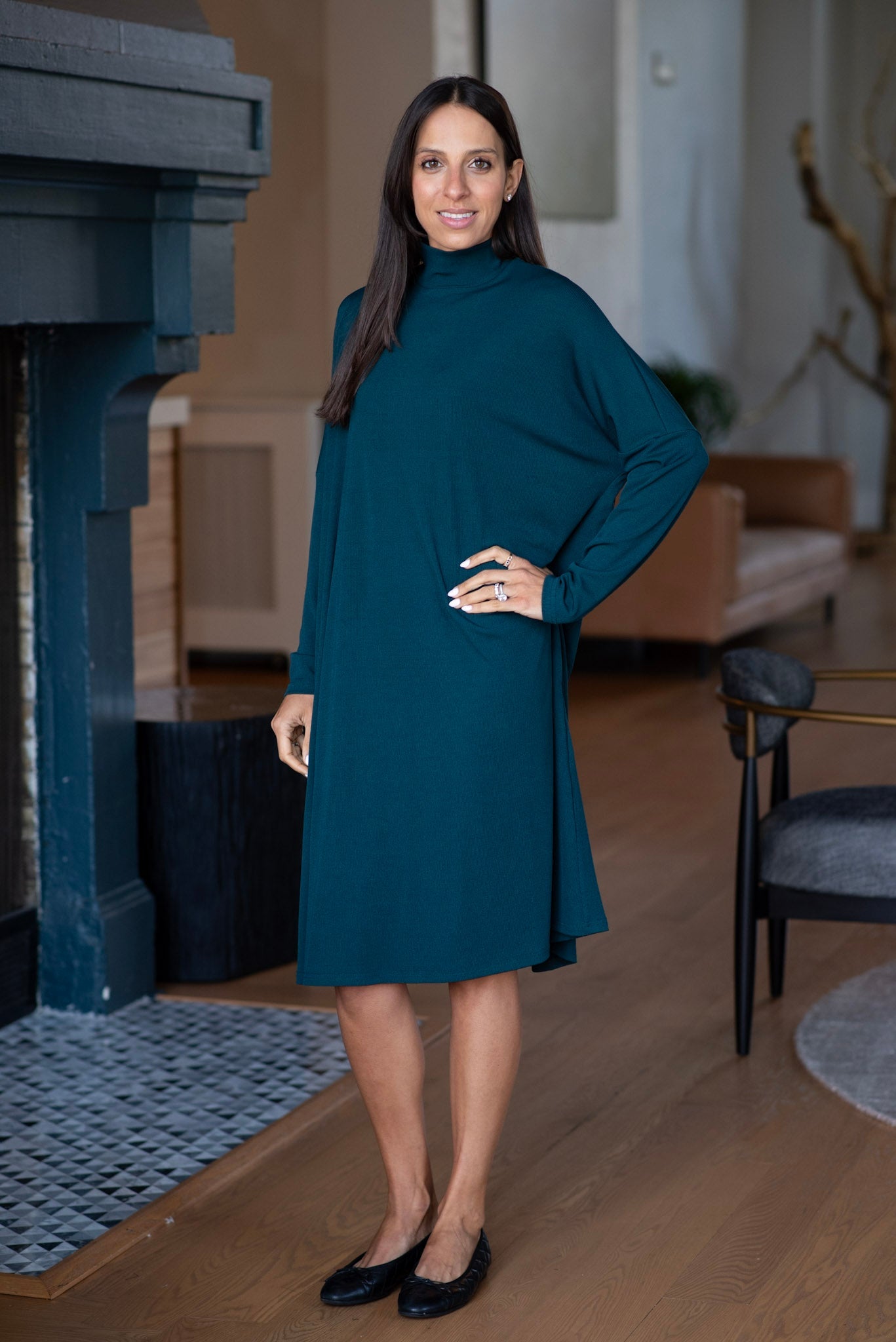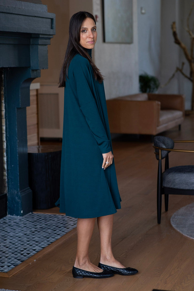RIBBED MOCK NECK DRESS (TEAL)