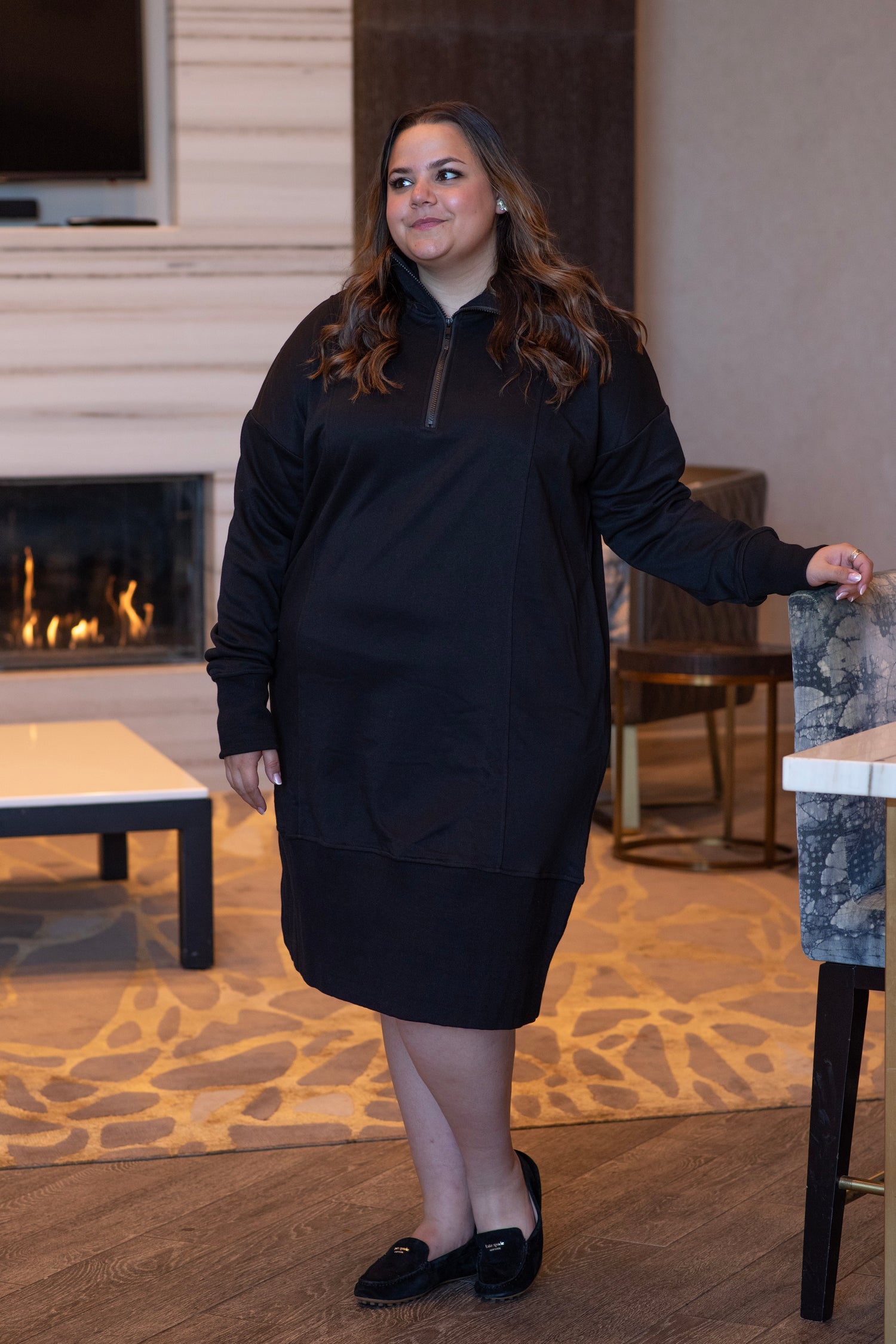ZIP FRONT SWEATSHIRT DRESS (BLACK)