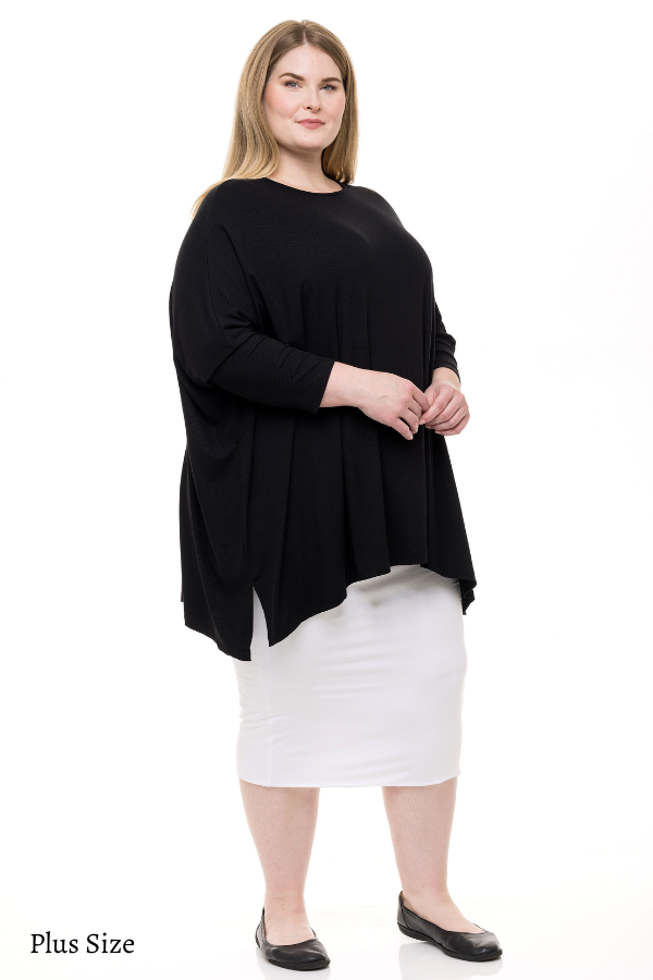 The perfect loose, every day, year round must have basic! With an over sized box fit that EVERYONE will love, just as easy to dress it up as it is to dress it down, so versatile and flattering it doesn't get any better!! How does the Ellie compare to the Eden? The same concept of our favorite fitted sleeve and loose body, but with a symmetrical hi-lo hem, side slits, and longer. Over-sized, size down Can easily be tucked in, belted, the options are endless! Long sleeves Round neck Hi-lo hem Side slits