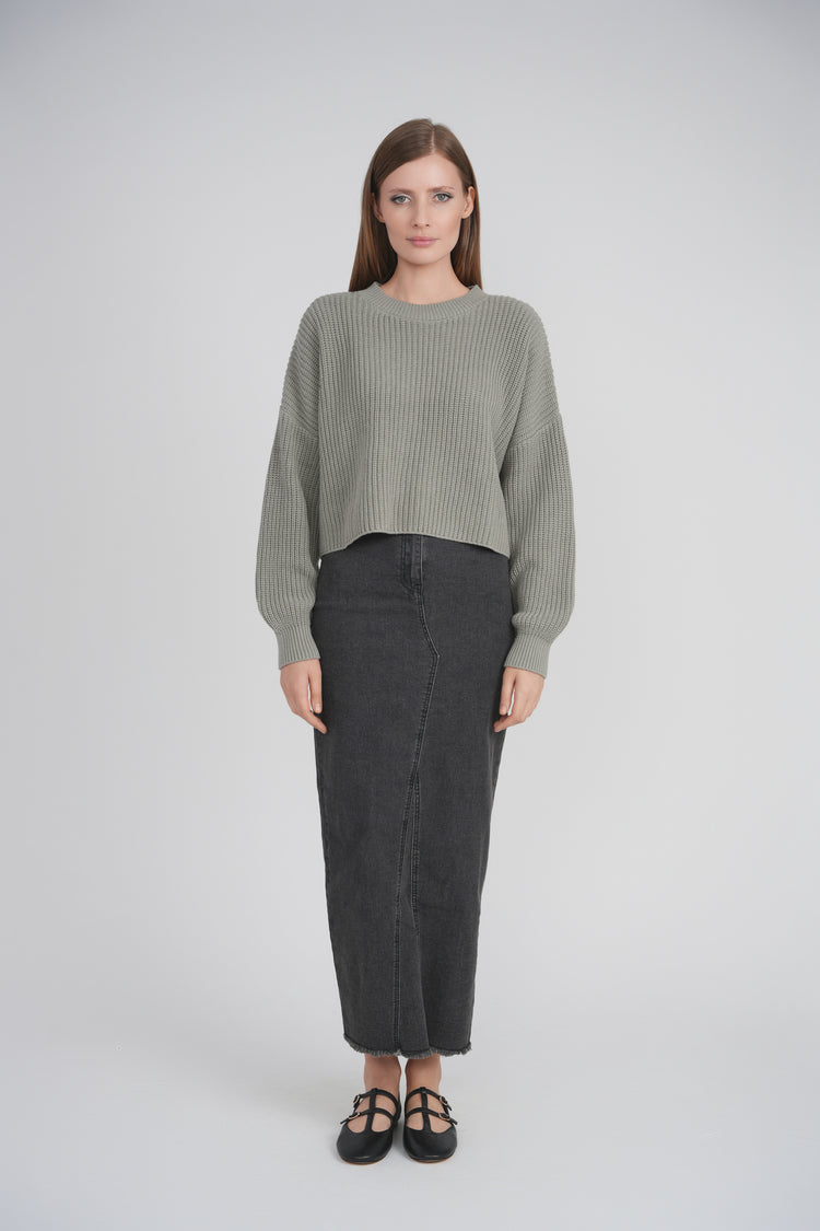 CROPPED KNIT SWEATER (GREY)