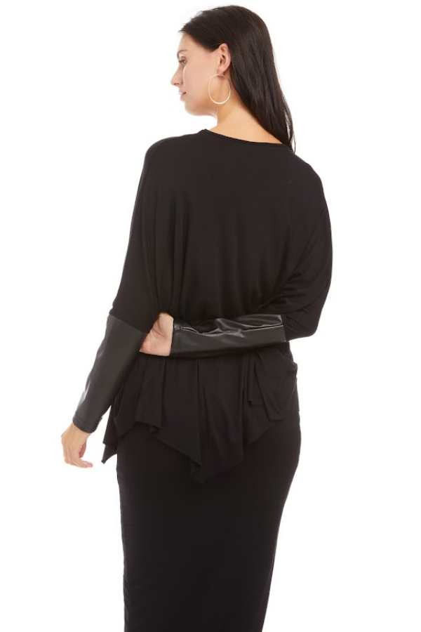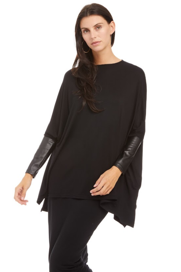 The Ellie top you all love now with leather sleeves, we took it up a notch! Match it with any of our a-line Skye skirts! This basic over sized top packs it all, comfort and style. Effortless, yet stylish and chic at the same time. Throw it over a skirt, layer it over a fitted dress, belt it, blouse it, knot it, tuck it in... the possibilities are endless!