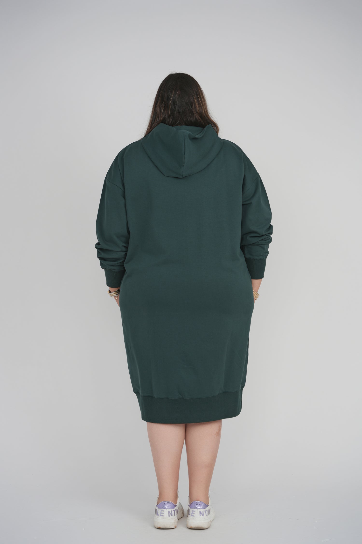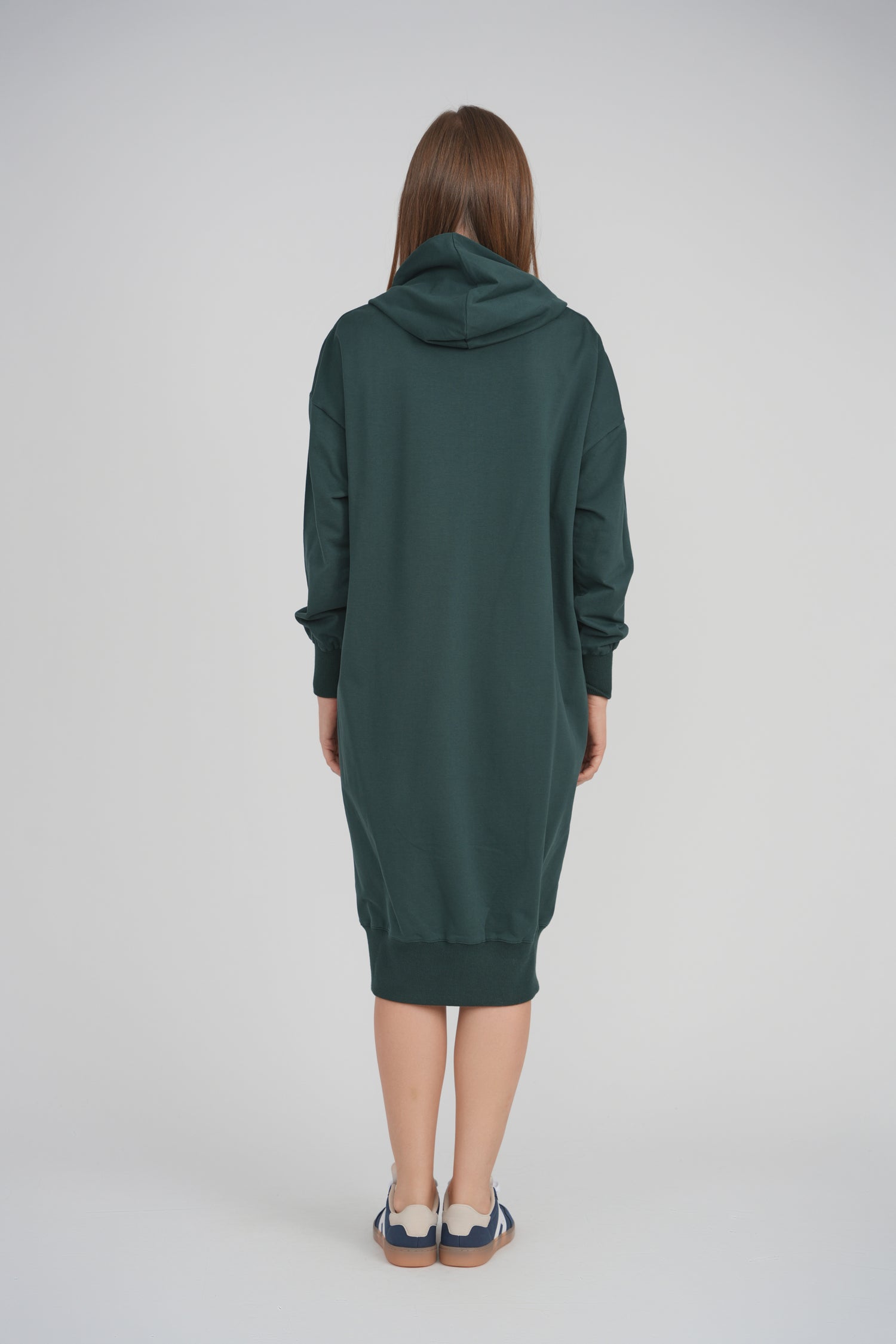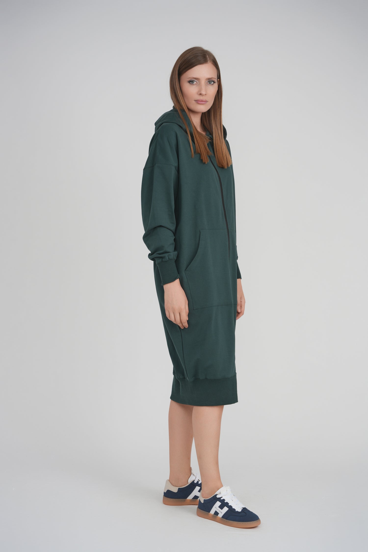HOODIE ZIP UP DRESS LONG LENGTH 41" (HUNTER)
