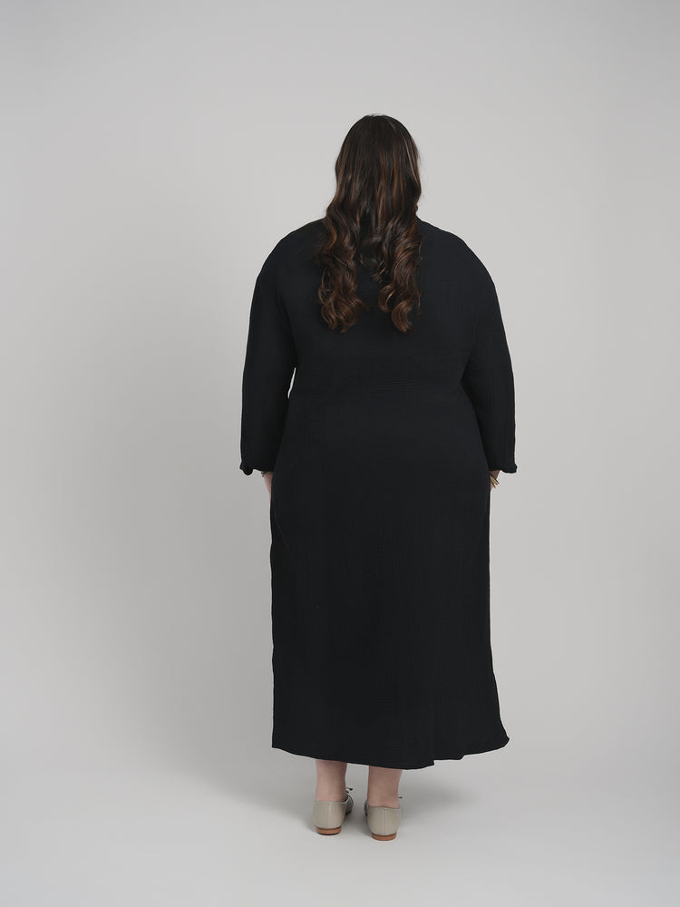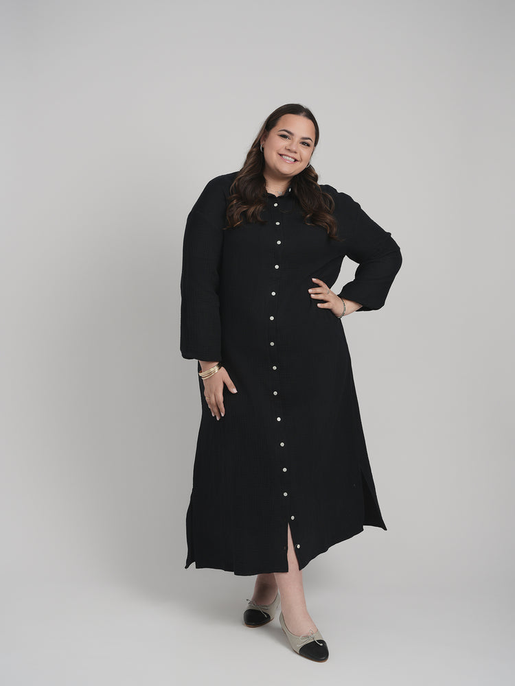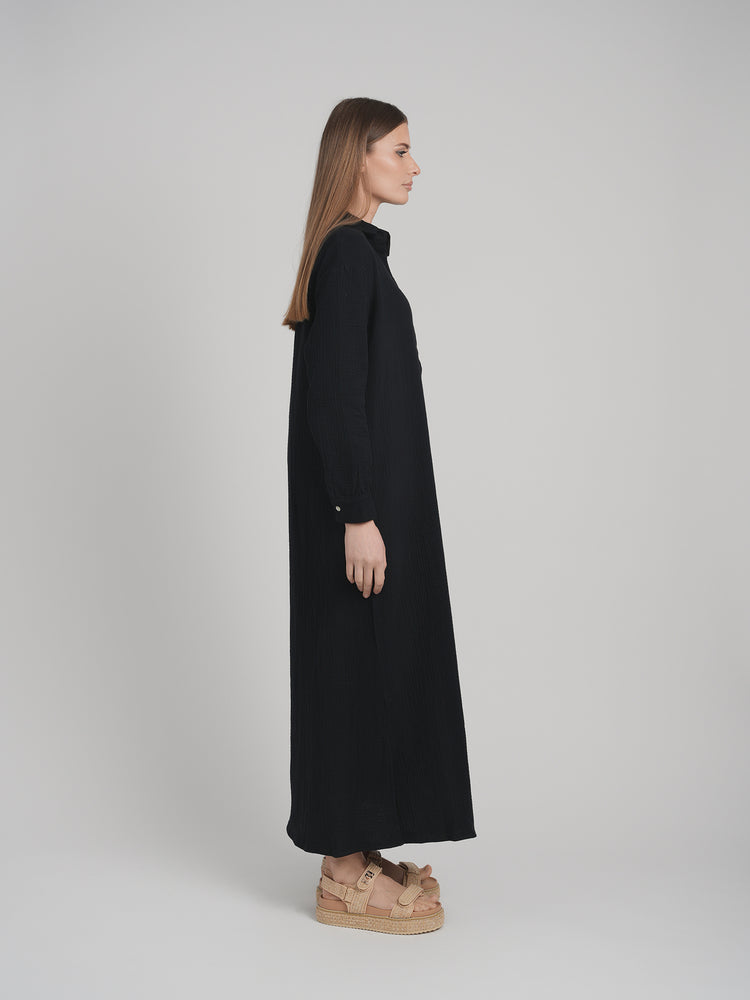 MAXI GAUZE SHIRT DRESS (BLACK)