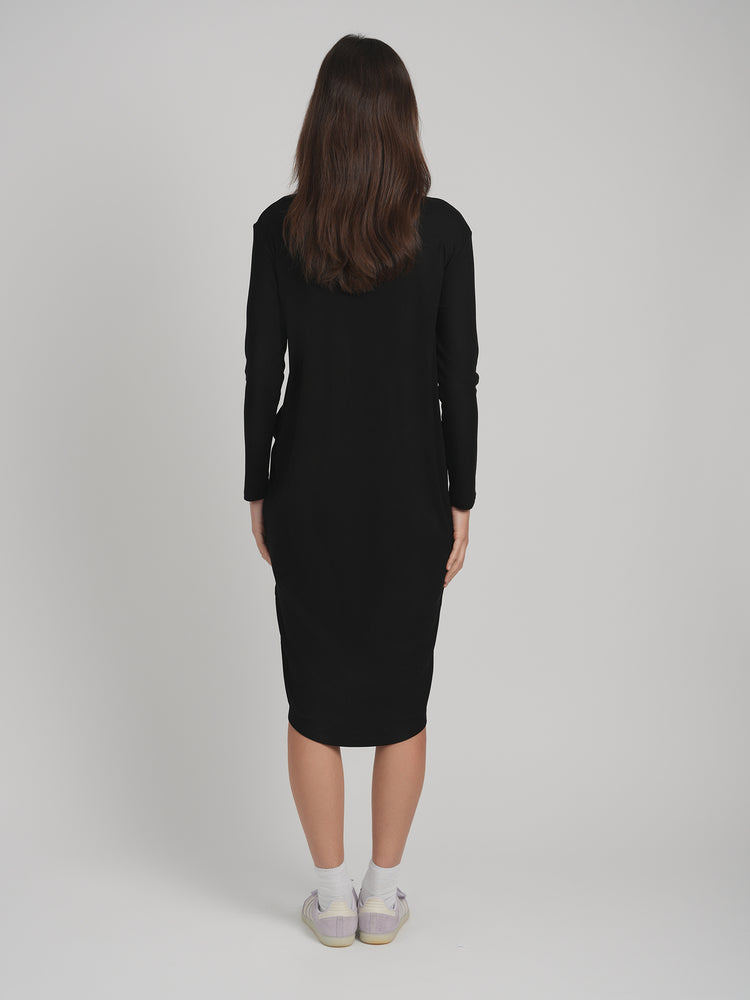 RIBBED POCKET DRESS (BLACK)